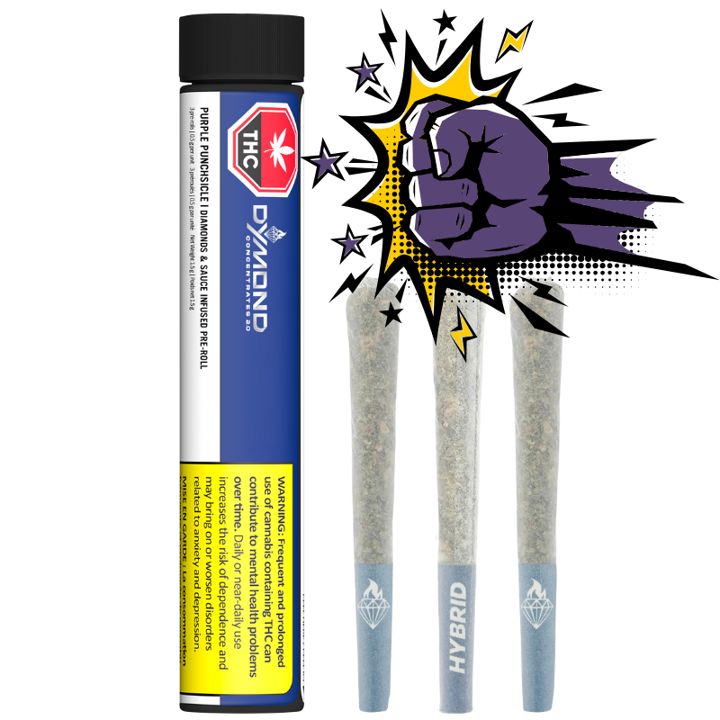 Frosted Flyers Infused Blue Dream Pre-rolls, expertly crafted with THCA diamonds and enhanced with terpenes and natural flavouring. Known for it's potency, this 3 pack is a spicy addition to the day.